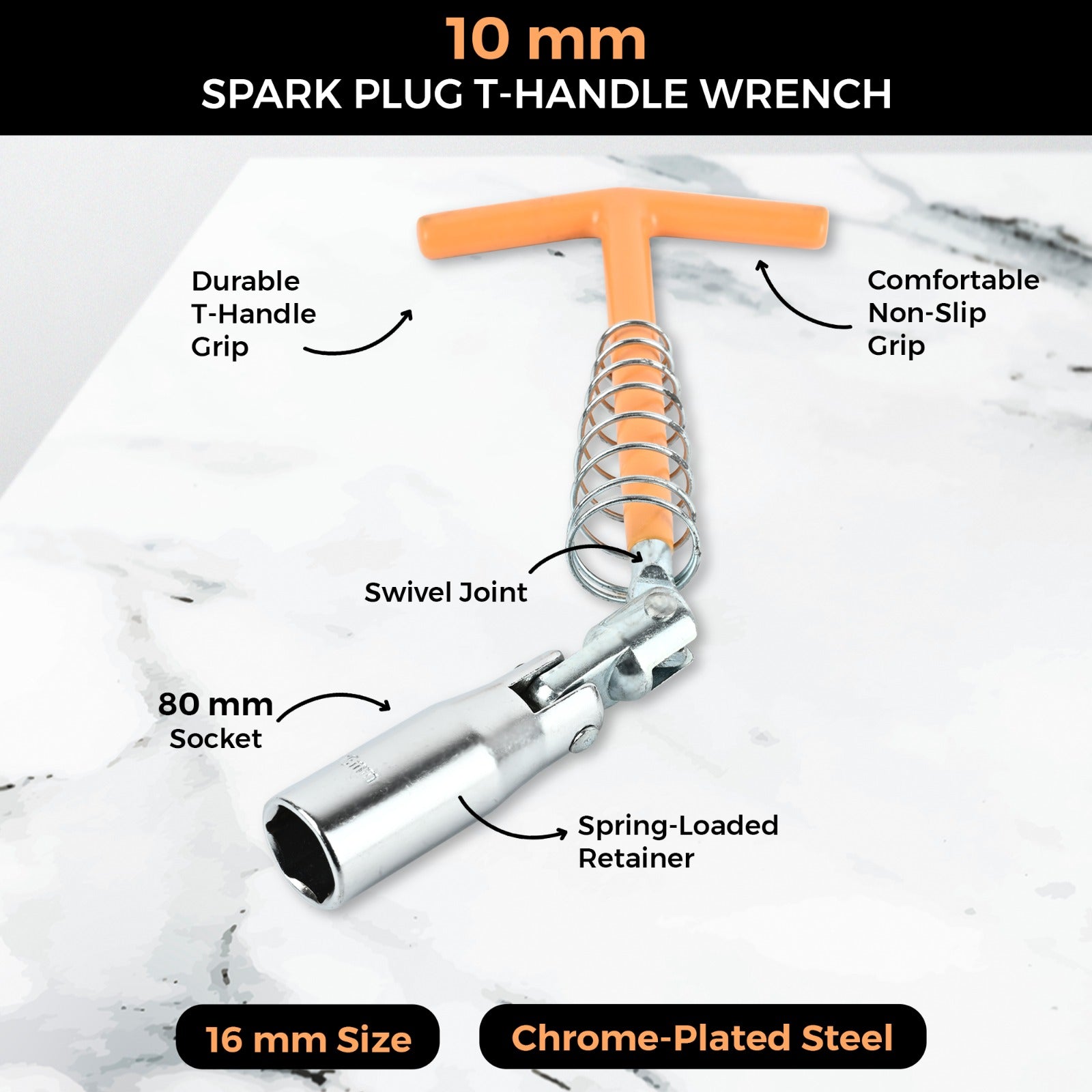 - Durable and High-Quality Construction: Made with premium-grade steel, this 16mm T-handle spark plug socket wrench is designed for long-lasting durability and reliable performance.