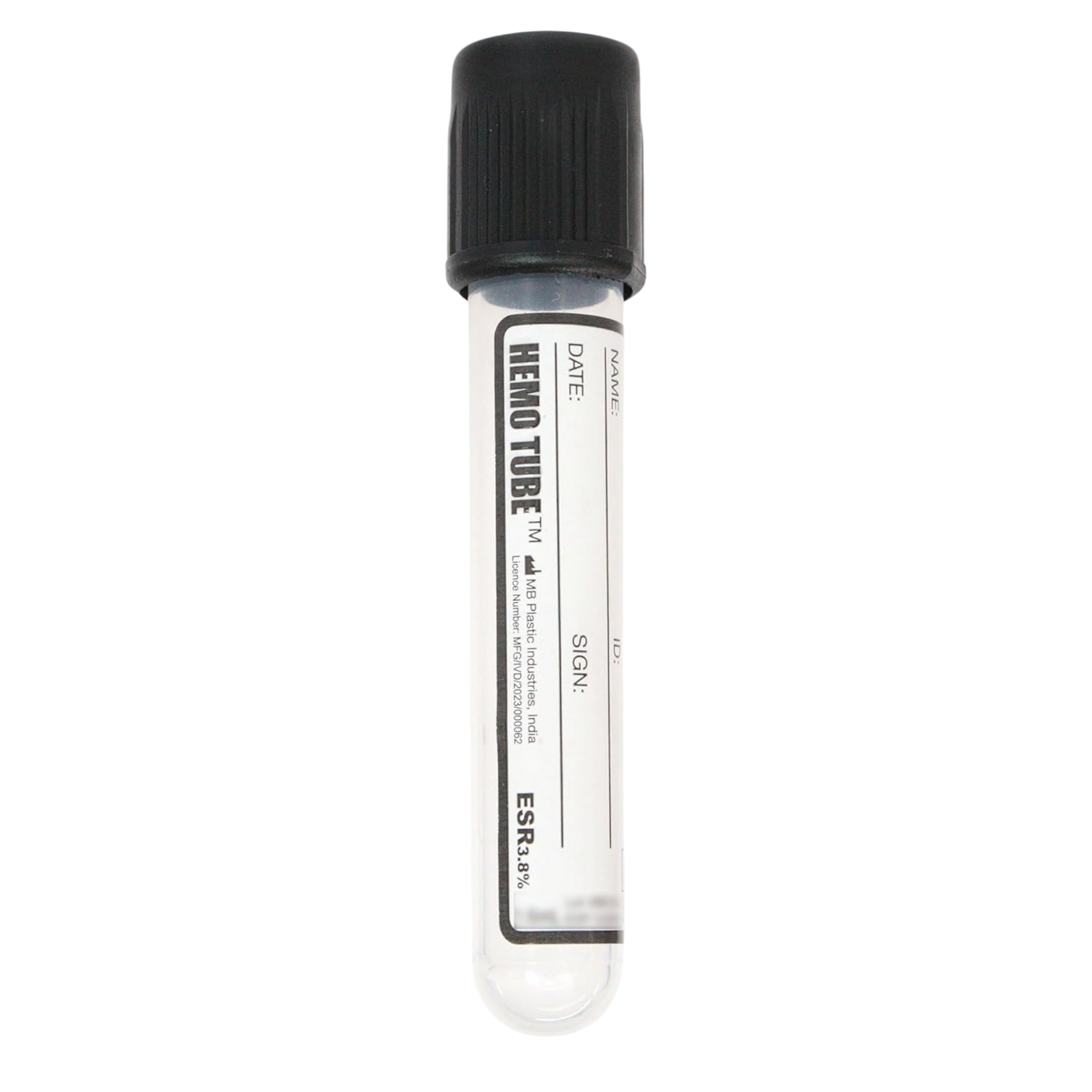 HEMO tube - Non Vacuum Blood Collection Tube (3.8% Sodium Citrate) (Qty-100)